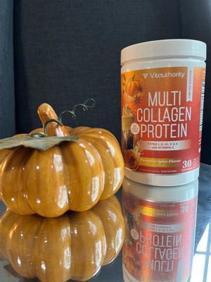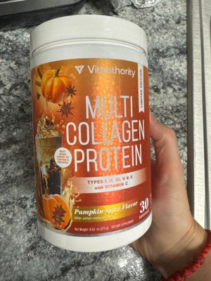 Multi Collagen Protein Powder, Collagen for Healthy Hair, Glowing Skin, Strong Nails, & Joint Health, Pumpkin Spice Flavor, Vitauthority, 30 Servings