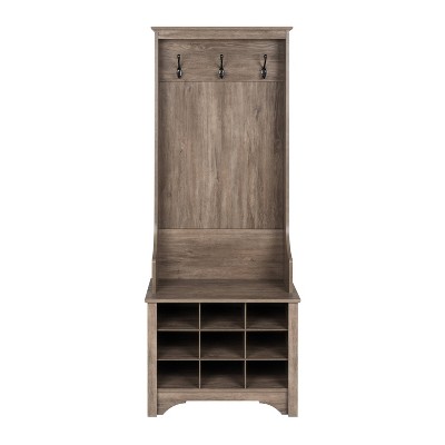 Multi-Functional Coat Rack with Shoe Storage and Nightstand, Sturdy Wood Entryway Organizer for Small Spaces
