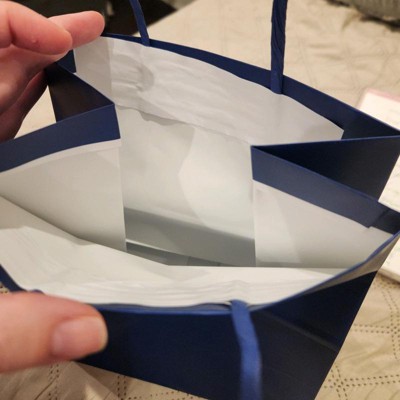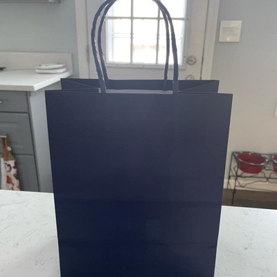 [This review was collected as part of a promotion.] This pack of blue bags has made my holiday wrapping much easier than the typical wrapping paper. I needed a large quantity of matching bags to give to a group of people and these bags were great as they are not gender specific or even holiday specific. They held a couple of small items easily. They do not have a cardboard piece in the bottom but still seemed perfectly sturdy enough for what they are able to hold. The pack was broken during shipping and one of the bags was a little scuffed so hopefully the packing protocols will improve.