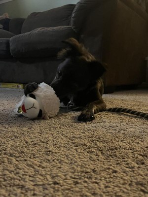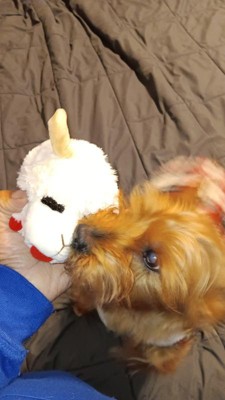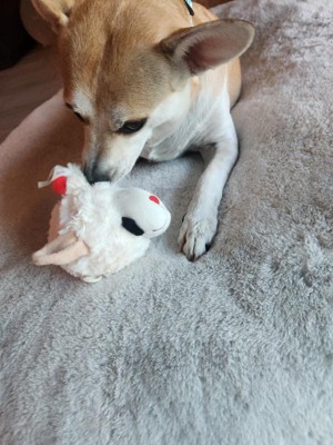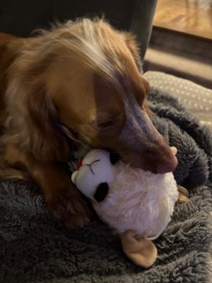 We picked this for our dog, but our maine coon cat made it his own. He loves Lambchop! He carries her throughout the house, wrestles with her and cuddles with her. Our dog likes to get a sniff in every once in a while when the cat will allow it. Overall, this toy was a win.