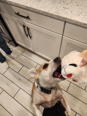 I love how incredibly cute this dog to is. This Lamb Chop Knobby Noggins Dog Interactive Plush Toy is made for both medium and large dogs alike. It’s made of durable high quality material that is made to last. My dogs are obsessed with toys that squeak and make noise so this toy was a huge hit. Inside is a ball that bounces which my dogs love to chase. I would highly recommend this adorable toy for hours of fun.