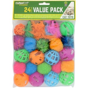 This Multipet Cat Toy Value Pack includes over two dozen fun assorted toys! From furry mice to sparkly puffs and plastic balls with bells, this pack is perfect for the adventurous indoor cat that likes to chase and pounce. Watch your cats go crazy over this assortment keeping them interactive and exercising throughout the day.