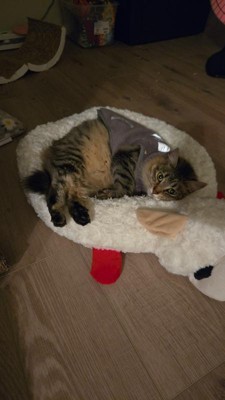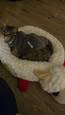 Adorable bed that all my pets seem to be fighting over. I was gonna keep this for the dog, but the cats have clearly decided it’s for them built well and soft for a medium to small animal. Two of my cats can share the bed, but they’re all hanging over the edges.