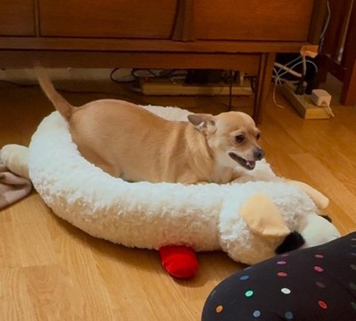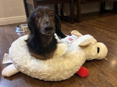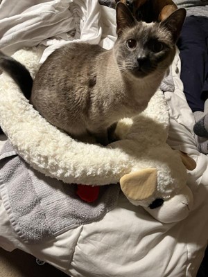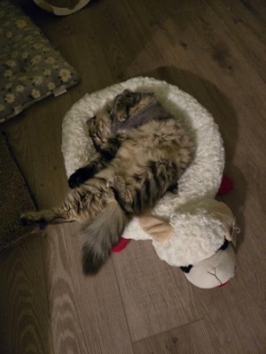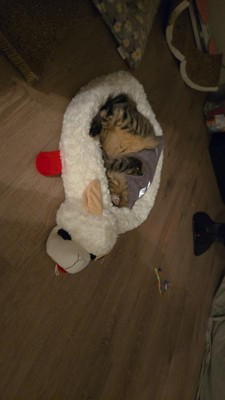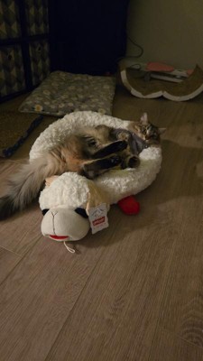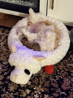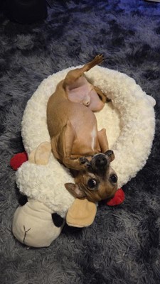 This is an adorable pet bed and if it’s my Shih Tzu so perfectly. It’s got great side walls for her to rest her head on and she also loves dragging it around like the other lamb chops toys. It’s held up quite well to her, dragging it around and playing with it