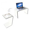 Enhance the appearance of your home with the minimalist style and modern lines of this Hasting Home Clear Acrylic Side Table. When oriented horizontally, this versatile side table can act as a lap desk to provide a convenient work surface for your laptop and papers or an acrylic bed tray, letting you enjoy delicious meals while watching TV. Positioned vertically, the acrylic table serves as a unique nightstand or small side table, offering the perfect place to display ornaments or hold an alarm clock.