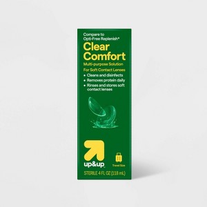 Keep your contacts hydrated and clean for healthy, happy eyes with the Clear Comfort Multi-Purpose Solution from up&up™. This soft contact cleaning solution features sterile saline solution along with a contact case, providing the perfect place to rest your contacts for the night and remove protein. Your contacts will be clean and ready for the next day so you can go through your day with clean, comfortable contacts.