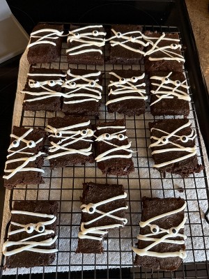 I followed the directions to a T. These brownies don’t taste very good (artificial and too sweet) but also, because they tell you to use a 9 x 13 pan they are really thin and dry. Also, the kit has you make way too much frosting so I wasted butter and sugar. I would just make brownies regularly and add mummy frosting to them.