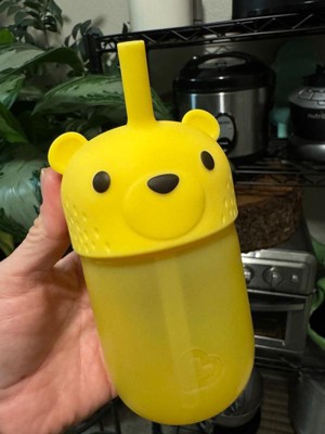Meet your little one’s new main squeeze, the Gentle Transition First Straw Cup. This honey bear-shaped straw trainer is the perfect companion for parents to help little cubs practice big new skills, like drinking out of a straw. Crafted of squeezable food-grade silicone in kid-favorite shades, this clever cup makes the transition from bottle to straw “beary” easy and fun! Just fill the cup with water or milk, secure the lid, and gently squeeze to move the liquid up through the straw. The one-way valve design and soft, easy-grip surface builds self-feeding confidence, one sip and squeeze at a time. With only three parts to clean, it’s super convenient for you, too. Equal parts functional, adorable, and fun, this cup is a sweet spot for happy hydration.