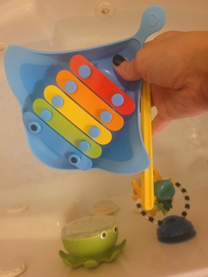My son really loves this whole set of bath toys. He absolutely loves musical instruments so being able to play them during bath time was quite the novelty. His favorite part by far is the string ray xylophone and mallet. I like that the drum toy has a suction cup. We just leave it on the inside of the tub in between baths. My son does seem to think there should be a second mallet because he wants to play drums with two drumsticks. However he still loves this set. It's a big hit for us!