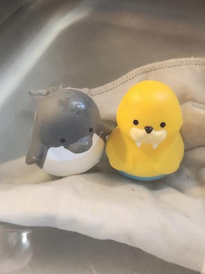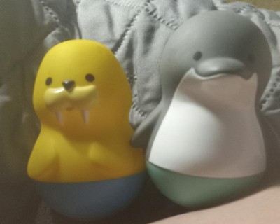 [This review was collected as part of a promotion.] I received the product in exchange for an honest review. My son loves this toy! He still sits in a baby tub and we put the walrus and dolphin in his bath and it successfully distracted him from fidgeting during bath time. I loved how even though my son tried to drown the walrus and dolphin, they kept bobbing back up. It was fun watching my baby try to figure out the toy. Highly recommend anyone buy this for bath time!