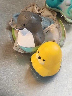 These bath bobbers are a nice addition to my 5-month-old's bath routine. He already liked bath time, but these give him something to focus on and grab while I'm washing him. The dolphin and walrus are a good size for his little hands, and he can hold onto them even when they're wet. The weighted bottom makes them pop back up when he pushes them down, which he finds interesting. What I really like about them is that they don't have any holes, so I don't have to worry about mold growing inside like with other bath toys. Easy to rinse off after bath time and they dry completely. Simple design but well-made. Good peace of mind knowing they'll stay clean, and he seems to enjoy having them around during baths.