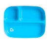 I have received this item in exchange for my honest review. This set is great! I love the bright blue color. Having both the plate with separators and without are very useful. I also love that it is all microwave and dishwasher safe. This is a necessity. The only reason I gave this item 4/5 stars is the cup. My 2.5 year old cannot use this cup without soaking her clothes. I'm sure it will be a great transition cup eventually. All in all I do love this set and would buy in the future!