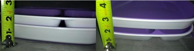 Pictures are of the two ways to stack the trays, the opening on the cup, and the grippy part of the bottom of the tray.