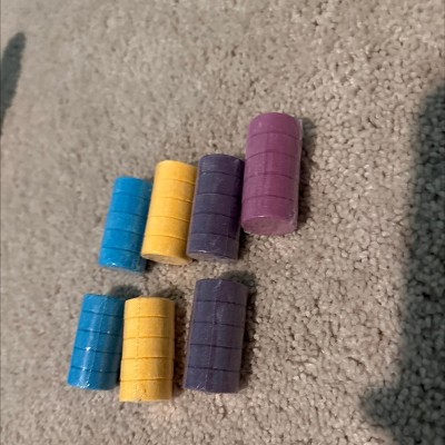 These are fantastic. They are tiny but have an incredible amount of color—yet they don't stain the tub at all! My kid loves to mix the colors to make "murky water" for his shipwrecks, or just have one bright color sometimes. Seriously the best bath bombs for kids, especially the price and packaging. Not having to struggle to get the plastic wrapper off a standard-size bath bomb and breaking off chunks of it in the process is so nice.