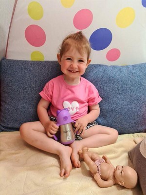 - Spill-proof straw and easy grip handles