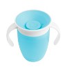 A: Good afternoon Shelia, Our Munchkin Miracle 360 Trainer Cup has 360˚ edge that allows drinking from any side of the cup, simply tilt the cup and suck on the valve's edge.
