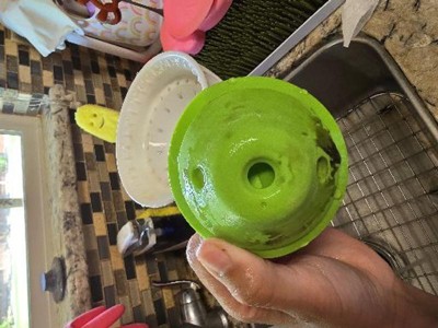 Q: does the child have to push anything down to allow fluid to come? or just tip upside down?