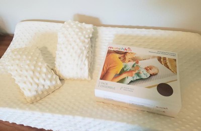 [This review was collected as part of a promotion.] The Munchkin Changing Pad Covers are extremely nice! They are made well and they fit perfectly with the Changing Pad. They are extremely soft and they have a really neat bubble texture. They are made out of 100% polyester and machine washable and dryable. They easily go on the cover with their elasticized bottoms and slots for the security strap. I really like that they come in a two pack, it’s super convenient to have extras when one is in the wash! I received this product for free in exchange for my honest review. My views are my own and would absolutely recommend them!