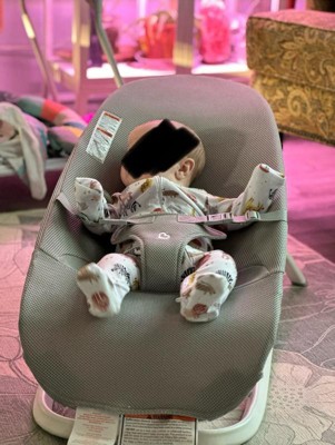 [This review was collected as part of a promotion.] This has been an awesome bouncer. My daughter figured out how to bounce it herself after several uses, and would happily sit and smile while watching her big brother play or watching me do chores in the kitchen. It was so nice to have a safe space for her to sit and be happy. It is so easy to clean, which is different from other baby chairs we have had in the past that are pain to get the cover on and off for washing after a blowout. It is also much lighter and easier to tuck away and store due to how it folds up. Changing from rocker to bouncer mode is super easy, but my baby was definitely a bouncer, so that feature got used to the most for us. Lastly, the grips on the bottom are super convenient, especially with a toddler around. We had another chair that slid across the floor very easily. This bouncer stays in place due to the strong grip on the bottom. I’d highly recommend this!