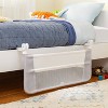 A: Good afternoon, Katie. The Munchkin Toddler Safety Bed Rail folds down to make lifting your child and changing their bedding easier.