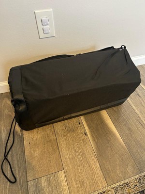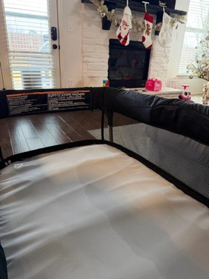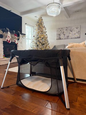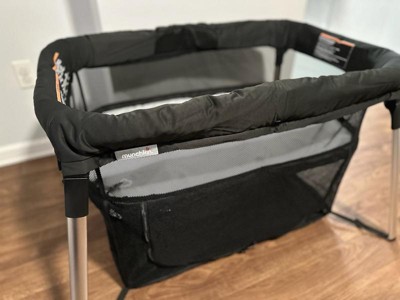 [This review was collected as part of a promotion.] I have a newborn and a toddler, so we’re on the go quite often and need safe sleep set ups and play stations that are safe for both the baby and my toddler. This 3 in 1 by Munchkin is it! It’s a play yard, crib, and has a bassinet feature where you can raise it to be a bassinet with zip storage below. It’s lightweight (even for me and I have noodle arms), and the carrier comes with backpack straps so that you can carry it on your back if your hands are full. The noise is minimal because the mesh is fine. It’s easy to clean and wipe down with material that is quickly cleaned using a baby wipe if needed. 15lb adult cat for size reference! The setup is also easy - pop open the legs which lock in place and the sides as well. Breakdown is simple, but if you’re noodle armed like me you really do need to push with both hands to unlock the side buttons to break down the sides. All in all, it’s versatile, compact, and light weight while remaining sleep safe and helping with the needs of both my baby and toddler. I recommend it!