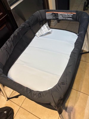 [This review was collected as part of a promotion.] First of all, I love that this product comes in a convenient carrying case and is very lightweight and easy to carry or travel with. Once I took it out of the case, it was extremely easy to figure out how to set up and change from one mode to the next. The case becomes bottom for crib, and then zips halfway up to transform into the bassinet. It’s a nice size and fits perfectly in our small bedroom. The sides are soft and the base is not incredibly hard, so with the right cover, it could be comfortable. Because of the material, it is also very easy to clean. The zipper is strong for the bassinet, it holds a decent amount of weight because both of my cats tested it for us at the same time and it held their weight. Overall, I think this is a really great product and it’s going to be extremely helpful when we need to travel our son will always have somewhere safe to sleep.