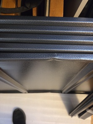 Damaged shelves (2 out of 5) and this is a Target "partner supplier", therefore Target will not discount this damaged product. This is metal shelving, therefore extremely heavy and difficult to return. I put it together to determine if functional and also found that grooved right angle side pieces are irregular and needed to be manually bent to ensure exact right angles for a proper fit with other pieces. Shelving was hard to assemble, falling apart several times, collapsed at one point in final stages due to mismatched right angle posts and took about 2-3 hours to assemble.