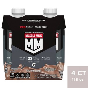 - Contains 4 (11 fl. oz) cartons of Muscle Milk Pro Advanced Nutrition Protein Shakes. Packaging may vary.