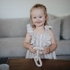 Offer comfort and relief with a teether designed to soothe sore gums throughout the entire teething journey. Made from 100% food-grade silicone, our teether is easily held by tiny hands. With three connecting links that mirror modern design aesthetics, parents can maintain their personal style while littles enjoy a practical and playful toy.