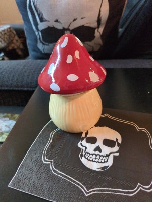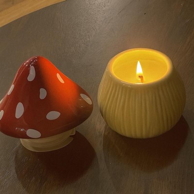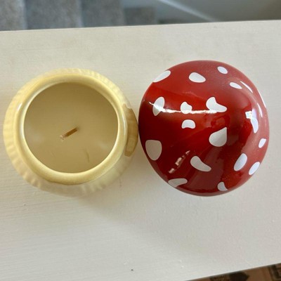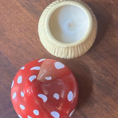 [This review was collected as part of a promotion.] I love this mushroom candle. It’s even cuter in person. It’s charming with the red cap and white spots giving it a cozy, whimsical look that fits perfectly with my fall decor. The candle burns evenly and slowly and the wax melts cleanly without leaving residue. The scent is light and pleasant- enough to notice but not too overpowering. It’s a nice warm touch to a room. Even after burning the ceramic mushroom jar makes a great decoration or hiding space. I would buy another for myself or give as a gift.