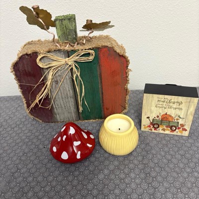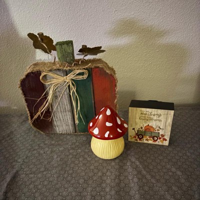 [This review was collected as part of a promotion.] I am loving the woodland theme and couldn’t wait to bring this little mushroom candle home. I needed to add something to my end table and this was a perfect size around 5 inches. It has a spicy scent great for fall and harvest season and very fragrant for a small candle. It burns nicely and looks cute went not burning. The vessel is made of ceramic so care is needed because the lid on mine chipped easily. It burns for approximately 20 hours and is a great little candle for a good price.