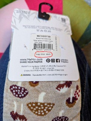 These socks are cute, but so cheap. They stretch out in the wrong places while not having enough elastic around the top, so they fall down and don't stay up. Additionally, there were several snags in the socks straight out of the packaging. And according to the sticker, the "recommended sale price" is only $6, not $10. I really wanted to love these socks!