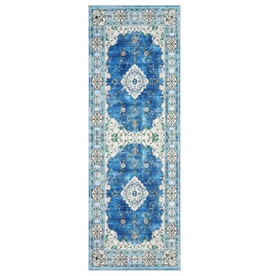 Mushroom Insect Rug 2x6 Runners for Hallways, Boho Kitchen Runner Rugs Non Slip Bath, Modern Washable Rug for Bedroom, Soft Long Rugs, Blue