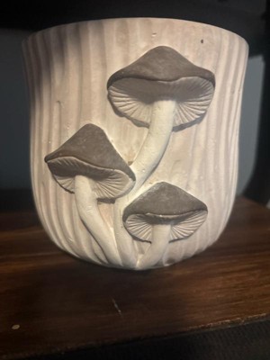 Handcrafted Cement Planter with Textured Tree Trunk Design and Mushroom Accents - Decorative Pot for Indoor and Outdoor Spaces