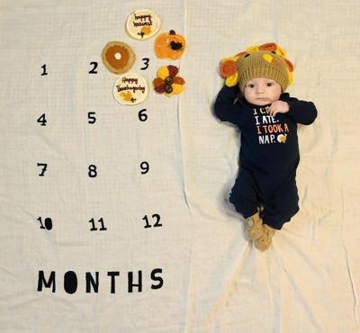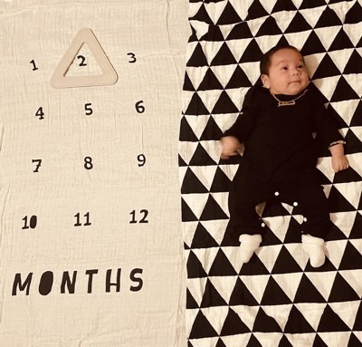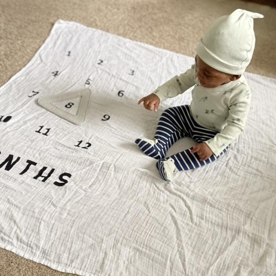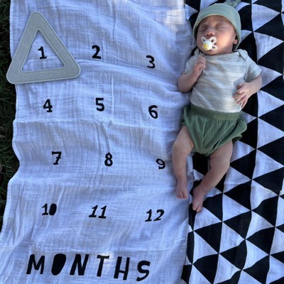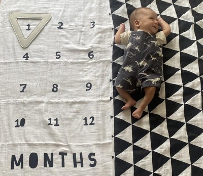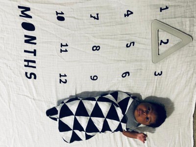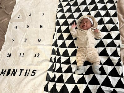 - One blanket features the numbers 1–12 so you can place the triangle frame around the appropriate month to document baby's growth