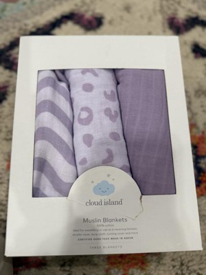 Your baby will stay comfy and cozy as they drift off to sleep with these 3-Pack Muslin Swaddle Baby Blankets from Cloud Island™. This pack includes three muslin blankets — one with an allover print, another with star print and the third with a checkered pattern. Made from 100% cotton muslin fabric, these swaddle blankets feel soft against their skin and help them stay warm while feeding, during stroller rides and beyond.