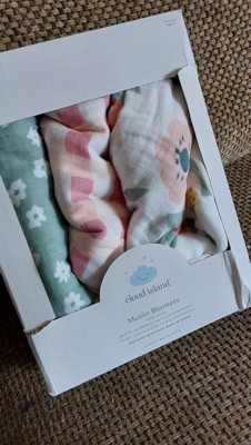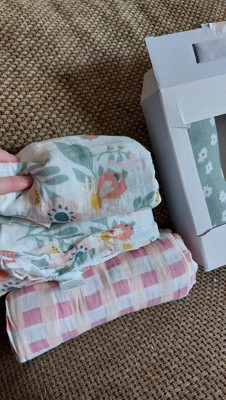 Muslin Swaddle Baby Blanket - Floral Gingham - 3pk - Cloud Island™