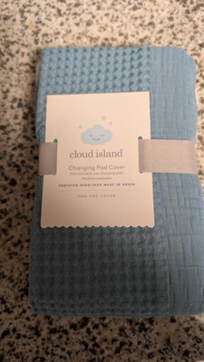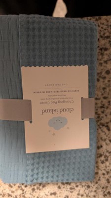 he Cloud Island™ Blue Muslin Waffle Changing Pad Cover, and I’m really happy with its quality and design. The muslin fabric is incredibly soft, making it gentle on my baby’s skin, and the waffle texture adds a stylish touch to the nursery.