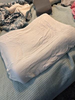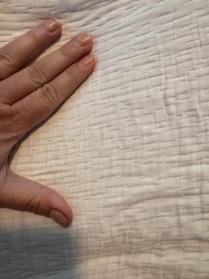 This cover is amazing! Don’t let the style or material fool you, it’s thicker than you think. However, if you’re a weirdo like me, you’ll probably want to add one of the waterproof sheets that you can put in between. I double these anyways just to have a quick change post-accident! The bamboo rayon is so soft. Stretches a lot! It was bigger than my changing pad. The material has extra enough so if you have a extended deep/high-sided slope to protect from rolling, this should be perfect for you because it’s quite generous with room and the elastic holds up. Label says cold water wash, but I tend to favor warm or hot, especially with #2 stains, and it’s lasted fine. Washed well with everything else without ruining color! I also add 1 cup cleaning vinegar to add in softness and remove stains. Also has a dummy-proof “top or bottom” label so the sleep deprived parent has one less thing to worry about for a quick change! This is something that can be used post-diaper stage as well as a pillow sham on like a king pillow.