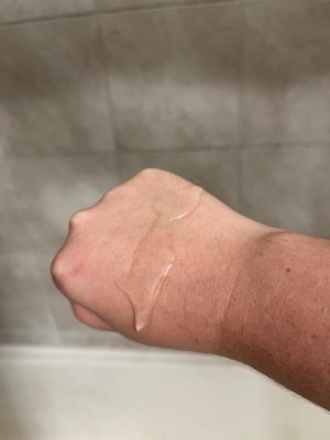 [This review was collected as part of a promotion.] This is such a gentle soap but really effective at cleansing. I have been using it as body wash in the shower. It is a runny gel texture with no scent. It is very gentle and works well with my sensitive skin. The pump bottle works well and is easy to use.