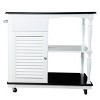 Roll out sleek storage with this kitchen island on wheels. A spacious countertop offers plenty of space to chop veggies or mix up cookie dough, while open shelving keeps bowls and serving trays within reach. A shutter door design adds a hint of farmhouse flair to your kitchen, blending modern convenience with classic style. Wheel this storage island into your eat-in kithen to meal prep like a pro,or station in your open concept living space to serve party appetizers and drinks.