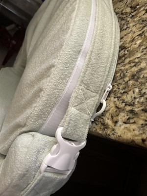 Where has this been my whole mommying life? I’m on my third daughter and I’m both embarrassed and regretting I never bought one. Initially, I was worried being busty and a little chunkier that this wouldn’t work for me, but I was completely wrong. For reference, I’m a 38DDD/40C 4-months postpartum, wear midsize 12/14. The boucle sage cover is entirely removable and washable. The cover is both stylish and functional. The design of this foam and firm structure is beyond anything its major competitor can offer. This has a belt that is adjustable with durably strong velcro. It sits around my body like a glove and doesn’t pinch, make me sweat, nor uncomfortable. It has these two firm egg shaped pods on either side to hold the babies head up just enough so they don’t sink. It’s like AI foam that just knows exactly where it has to be to support their little bodies. My biggest worry usually when using the competitor’s is the fear of my baby rolling off. Honestly, I haven’t had that concern yet with this. I can feel she also feels in control and confident she is secured while nursing. She doesn’t fidget or wiggle when on this compared to the boppy. It’s the little sense of security which all moms just need when their already exhausted and can barely focus. I highly recommend this to any moms. This nursing assistant is the best on the market and worth any penny they ask. I truly wish I had given this a chance with my previous two children.