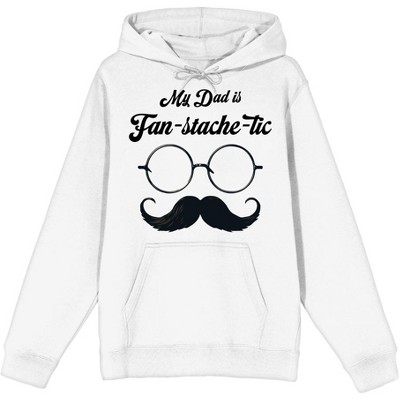 • CUSTOM DESIGNED: This punny apparel features a big, bold graphic of eyeglasses and a mustache - "My Dad Is Fan-Tache-Tic!" - an eye-catching image that has been professionally printed for long-lasting print quality.