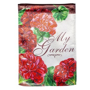 Product Name: My Garden Geraniums Lustre Garden Flag