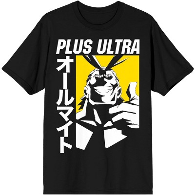 Showcase your admiration for My Hero Academia with this men's black crew neck short sleeve t-shirt. Featuring Izuku Midoriya standing confidently in front of a red silhouette of All Might, and the series logo below, this shirt captures the dynamic spirit of the anime. Made from soft cotton, it offers both comfort and durability. It's easy to care for with a machine wash on cold with like colors and a tumble dry on low heat, making it ideal for everyday wear.
