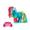 Get ready to relive the rainbow-powered fun with the My Little Pony Totally Rad Moonstone! This dreamy unicorn—known for her soft blue body, twinkling eyes, and magical vibe—has been totally transformed with a retro makeover inspired by the bold styles of the late ’80s and early ’90s. Moonstone now features crimped rainbow hair, a bright neon scrunchie, and a cosmic planet-and-stars cutie mark that adds a galactic twist to her classic charm. This 4-inch collectible shines with throwback flair and comes styled with two fuzzy legwarmers, a neon scrunchie, and a colorful comb to keep her mane out-of-this-world fabulous. Whether you're rediscovering a childhood favorite or meeting her magic for the first time, Moonstone delivers the perfect blend of fun, flair, and fantasy. Because rad style is truly timeless. Perfect for kids and collectors ages 4 and up.