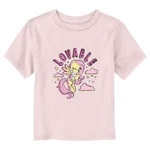 Join in on the spirit of magic with exciting new officially licensed apparel for the whole family from the ever-popular animated series My Little Pony: Friendship is Magic! This Toddlers' My Little Pony: Friendship is Magic Fluttershy Lovable Graphic T-Shirt features the sweet Fluttershy holding a bunny with pink clouds, hearts, and the word "Lovable" written around them. Grab this My Little Pony: Friendship is Magic gear for your baby today and head on down to Ponyville in style!