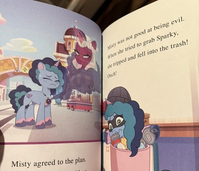 While the front is an adorable innocent unicorn, the story is about a bad unicorn who is trying to manipulate and convince the “good” unicorn to do evil things. Just a really odd story line for a little girl. Glad I skimmed through the pages before giving it to my daughter. Yes it has a happy ending but just seems so unnecessary for a kids book. Will be returning this.