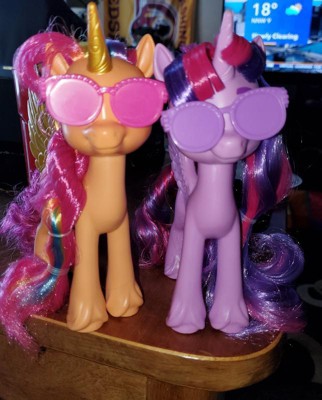 Pony worlds come together when iconic Alicorns unite under the magic of friendship. From My Little Pony: A New Generation, get to know Sunny Starscout in her Alicorn form -- sparkly wings, Unicorn horn, and rainbow highlights in her hair. From My Little Pony: Friendship is Magic, reimagine the magic of Twilight Sparkle. Now designed in the style of movie characters! Ponies are 6 inches tall with long, soft hair that's fun to play with and style. Comes with 24 hair styling accessories. Style their manes with the comb and clips, decorate their headbands with plug-in charms, and accessorize with bracelets and sunglasses. Fans new and old can imagine adventures with iconic My Little Pony: A New Generation and My Little Pony: Friendship is Magic favorites. Toy makes a great gift for kids ages 3 years old and up.