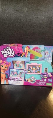 Serve up some magic with the Sunny Starscout Smoothie Truck 2-in-1 My Little Pony playset. Sunny is an adventurous Earth Pony who makes sweet treats in her mobile smoothie truck in the My Little Pony: Make Your Mark show. My Little Pony set comes with a 3-inch scale articulated pony figure that kids can pose in different ways. This food truck playset for kids opens up into a play kitchen with pretend food! Imagine making pretend cupcakes in the oven or smoothies in the blender accessory. Press this Sunny Starscout toy's hoof onto the truck's lever to turn on the neon light and open the truck window. Then, open the truck to reveal the play kitchen inside. Includes 15 accessories, some of which attach onto Sunny's hoof. My Little Pony food truck, kids playsets, and small dolls make great birthday gifts for girls and boys 5 years old and up. (Additional toys each sold separately. Subject to availability.)